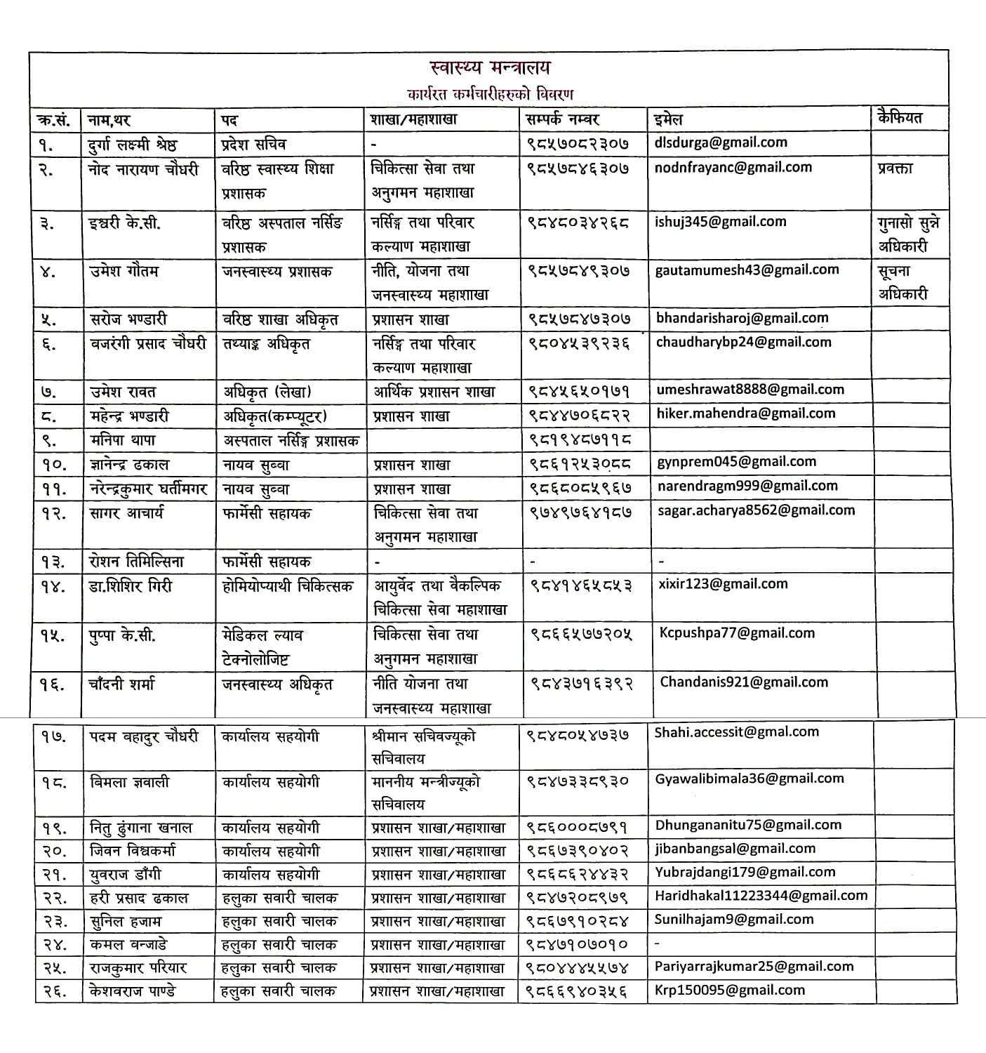 स्वास्थ्य मन्त्रालयको मिति २०८२।०५।०६ गतेको निर्णयानुसार सरुवा भएका प्रदेश स्वास्थ्य सेवाका कर्मचारीहरुको विवरण।